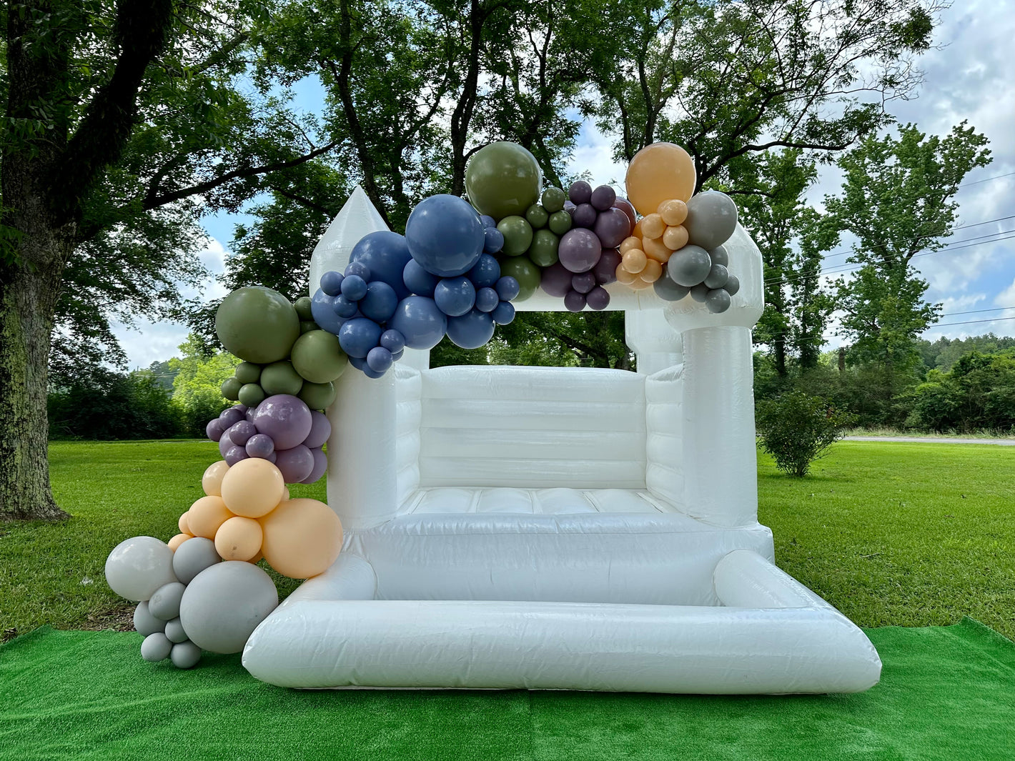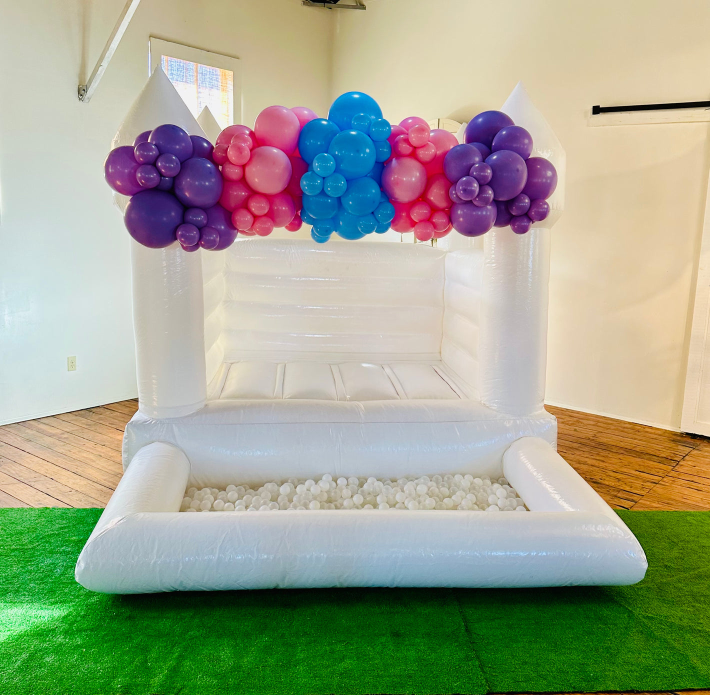 Mini Bounce House Rental with Basic Balloon Arch and Mylars and colored balls