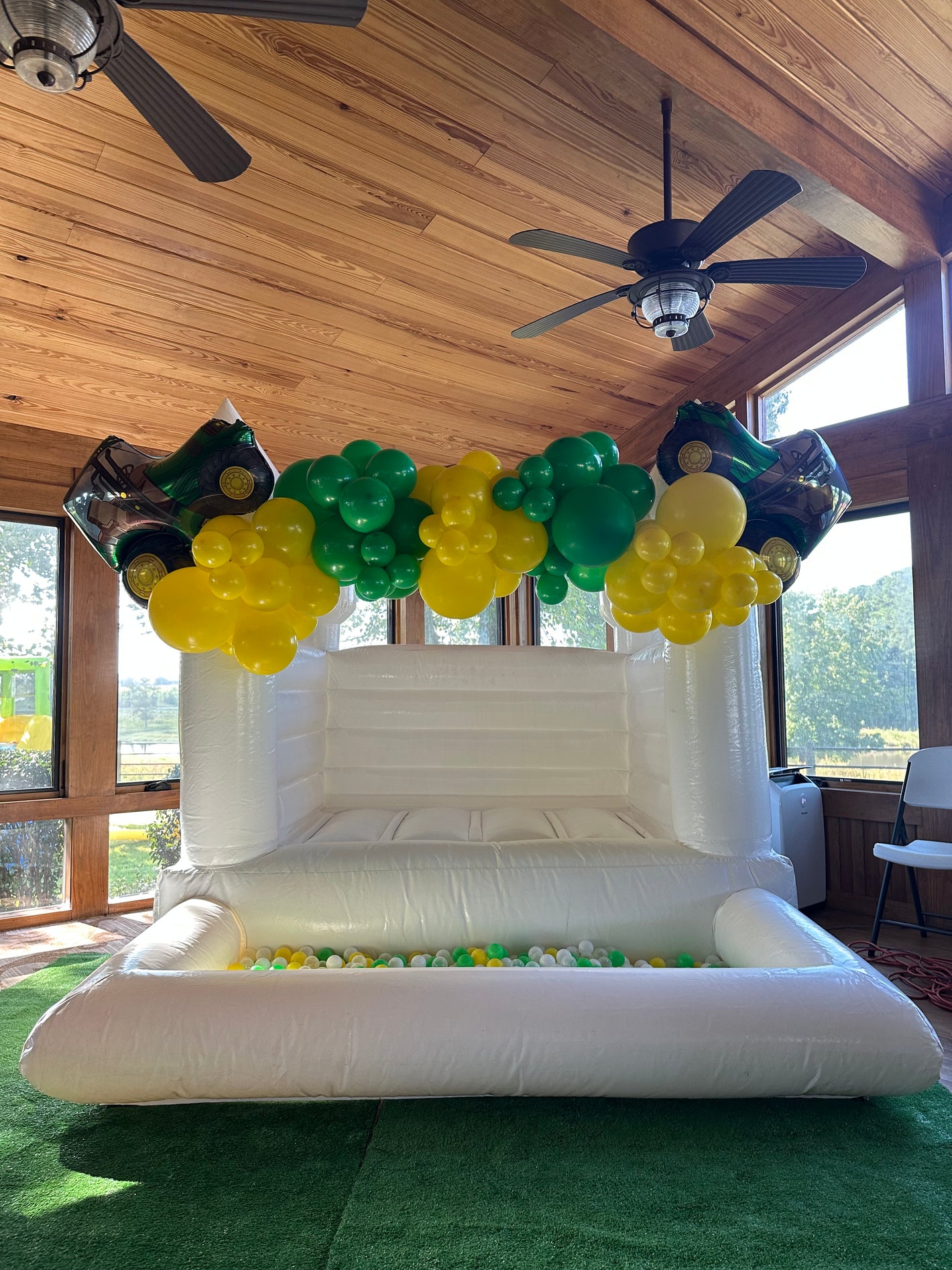 Mini Bounce House Rental with Double Side Balloon Designs, Mylars, fringe, and colored balls